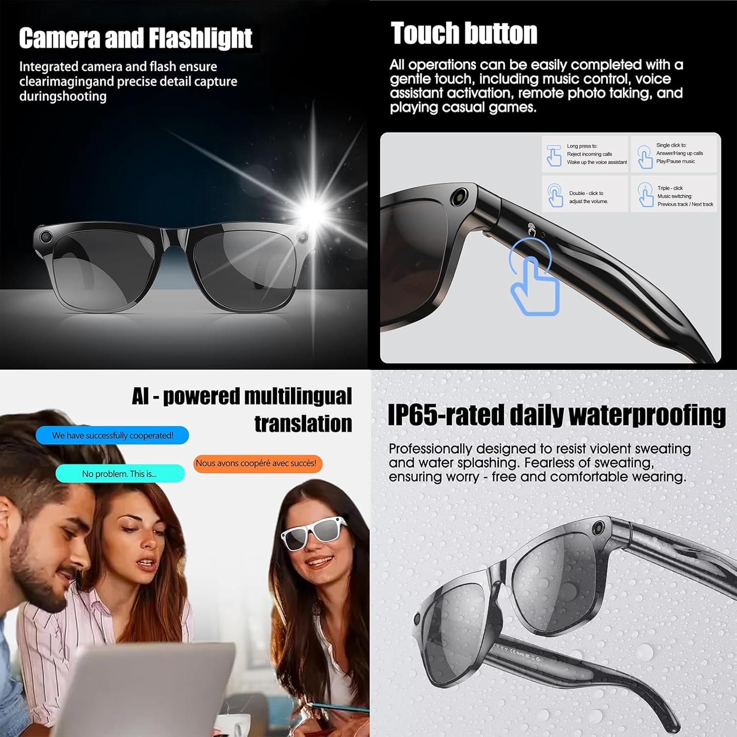 These smart glasses are sleek and functional! The HD camera doesn¡¯t look obtrusive, surround sound is crisp, and the polarized lenses are a must for anyone who drives or works on screens.