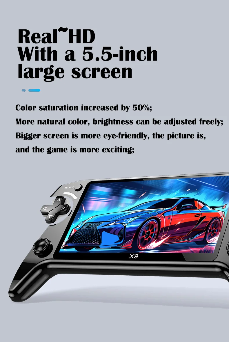 X9 Handheld Game Console 5.5 Inch Screen, Supports Ten Emulators, Ultra-HD Display, Perfect Gift for Kids & Father’s Day